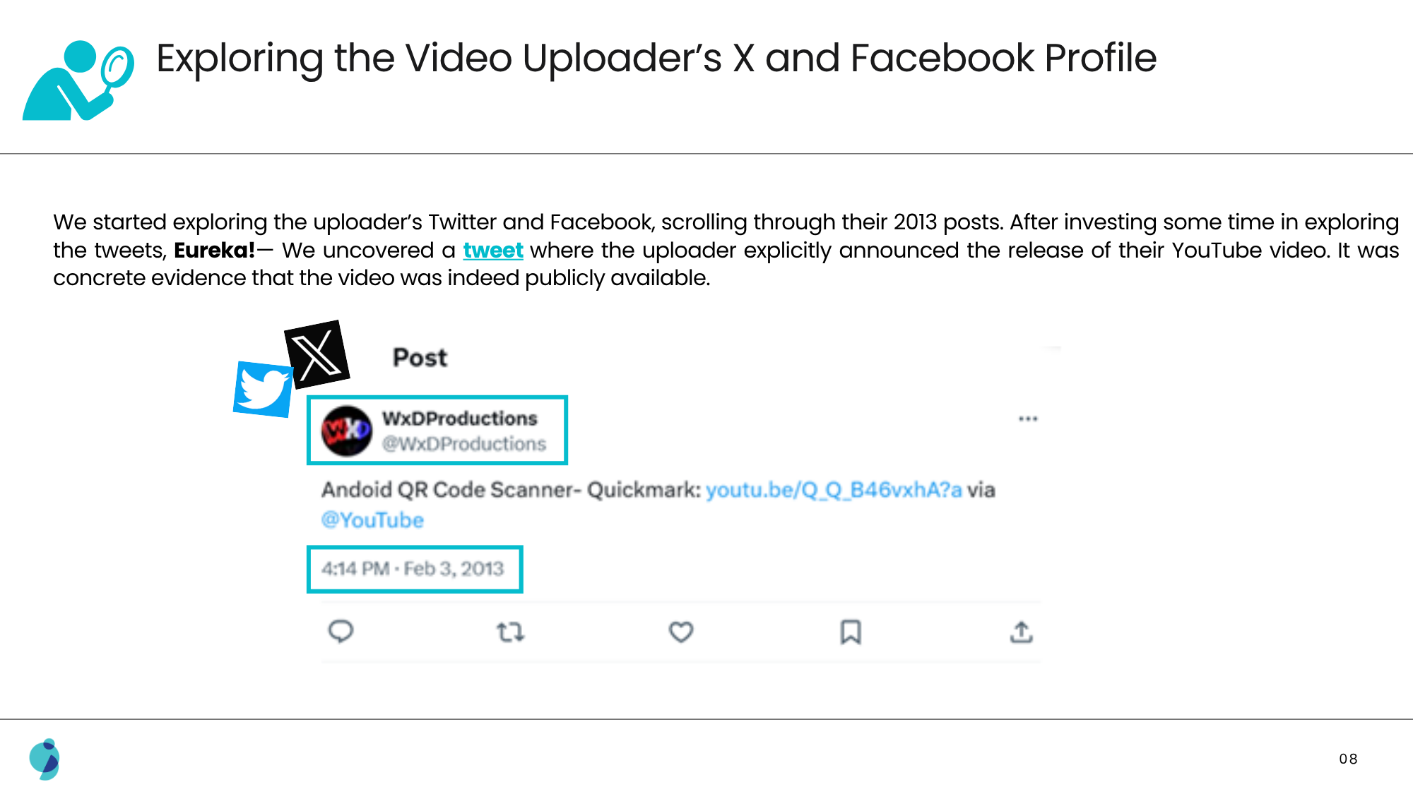 To overcome this, GreyB provided the client with two supporting evidence—a tweet and a Facebook post — to prove the video’s public availability before the cut off date.