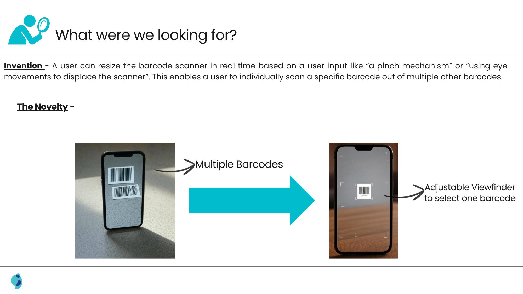 The client was searching for an invention where a user can resize a barcode scanner in real time based on inputs such as a pinch gesture or eye movements.