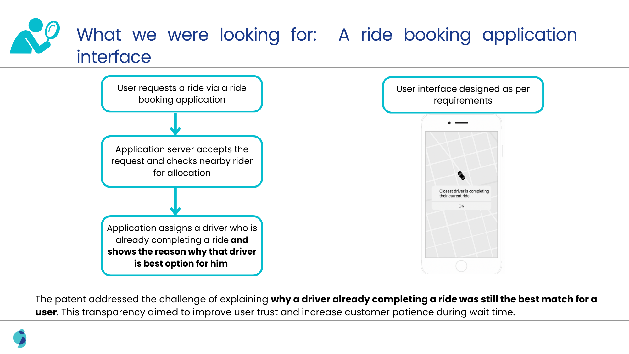 The patent under scrutiny claimed a unique method for assigning a driver who was already completing a ride, along with a UI explanation showing why that driver was the best match. Conventional searches spanning patent databases, non-patent literature, and technical documentation yielded only partial overlaps. These sources described drivers completing previous rides or estimated arrival times. However, none provided the explicit reasoning behind assignment, which was the heart of the disputed claim.